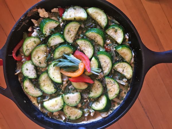A vegetable torta makes a quick and yummy breakfast, lunch, or dinner. Made with ingredients you have on hand in your vegetable drawer or bowl, the vegetable torta is a 30 minute start-to-finish meal akin to a crustless quiche, with ten times the nutrients and flavor. This is a beautiful meal and a fun, creative experience. It can be served at any temperature any time of day.