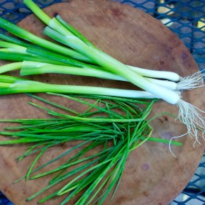 Although scallions are often called green onions they are not miniature onions, and should be distinguished from chives (onion chives) which are bulbless. The green stems are the most nutritious part and contain over 100 times more phytonutrients than the common white onion. Scallions make a great substitute for onions or cut on the diagonal and use as a beautiful and flavorful topping to salsas, chili, soups and egg dishes– and they are a staple in Asian stir-fries. Be sure to use them shortly after purchase– they will not last as long as regular onions.