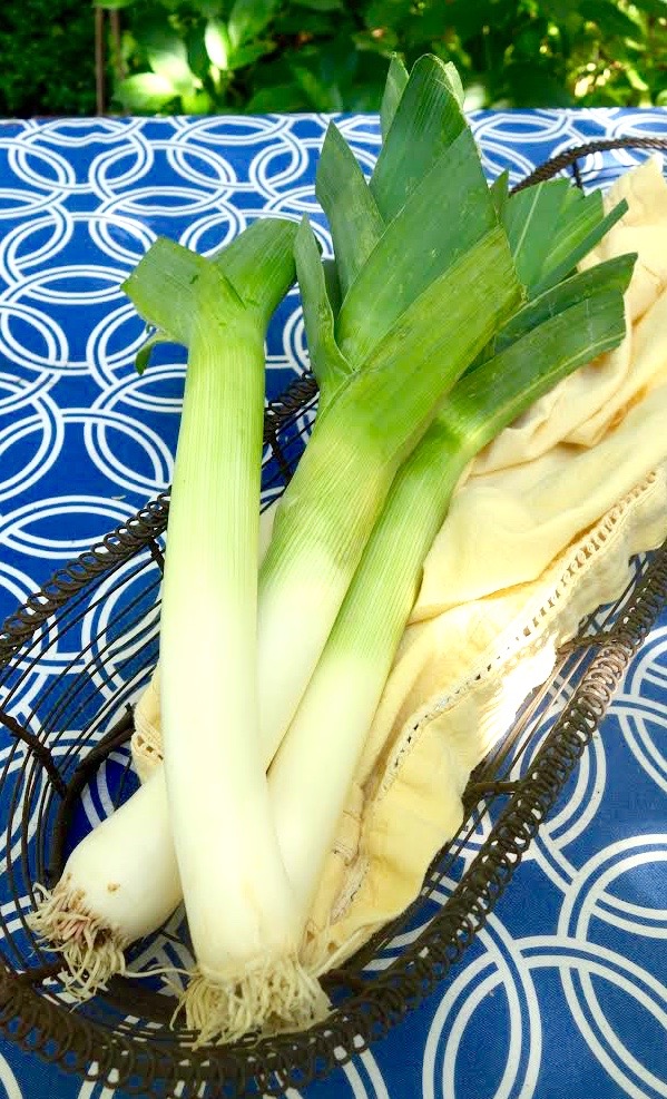 Leek soup is a springtime favorite and I make mine with sautéed leeks in homemade chicken stock, a few fresh fresh peas and diced Granny Smith apple pieces. With an immersion blender or food processor, I combine the ingredients to a desired consistency and garnish with fresh herbs, and a touch of cream.